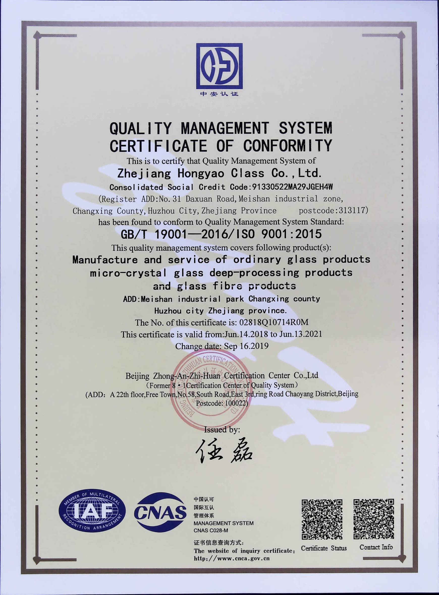 Zhejiang hongyao glass co., LTD, is the predecessor of " Changsheng glass", has been engaged in the research and development and production of kitchen electric glass since its establishment in 1993, is a mature enterprise with more than 30 years of glass production experience.In order to adapt to the development of the times and create a new era of glass manufacturing, Hongyao start again with a new look. In April 2017 with a registered capital of 12 million yuan,become a technology-based enterprise specializing in technology research and development, production and sales of smart appliances glass.