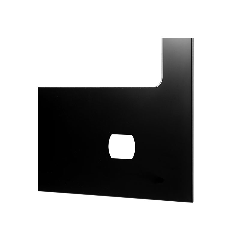 產(chǎn)品用于智能側(cè)吸油煙機(jī)上,油煙機(jī)面板,產(chǎn)品采用高精度切割技術(shù)和精致磨邊技術(shù)外形加工,印刷涂層以黑色為主,橙黃色logo,感應(yīng)開(kāi)關(guān)符號(hào)采用橙色半透明印刷,起到指示燈亮字符顏色與logo顏色一致的效果,產(chǎn)品設(shè)計(jì)獨(dú)特,外形優(yōu)美,印刷顏色使整體產(chǎn)品顯得大方、莊重,與主機(jī)和諧結(jié)合。