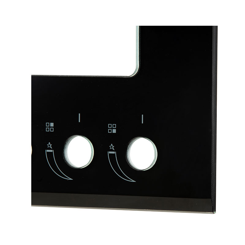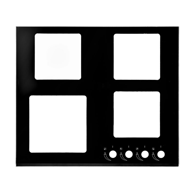 產品用于歐式灶具,采用高精度水刀沙切割技術完成不同規格方孔切割,產品整面黑色印刷白色圖文,字體清晰可見,產品外形優美,設計獨特。