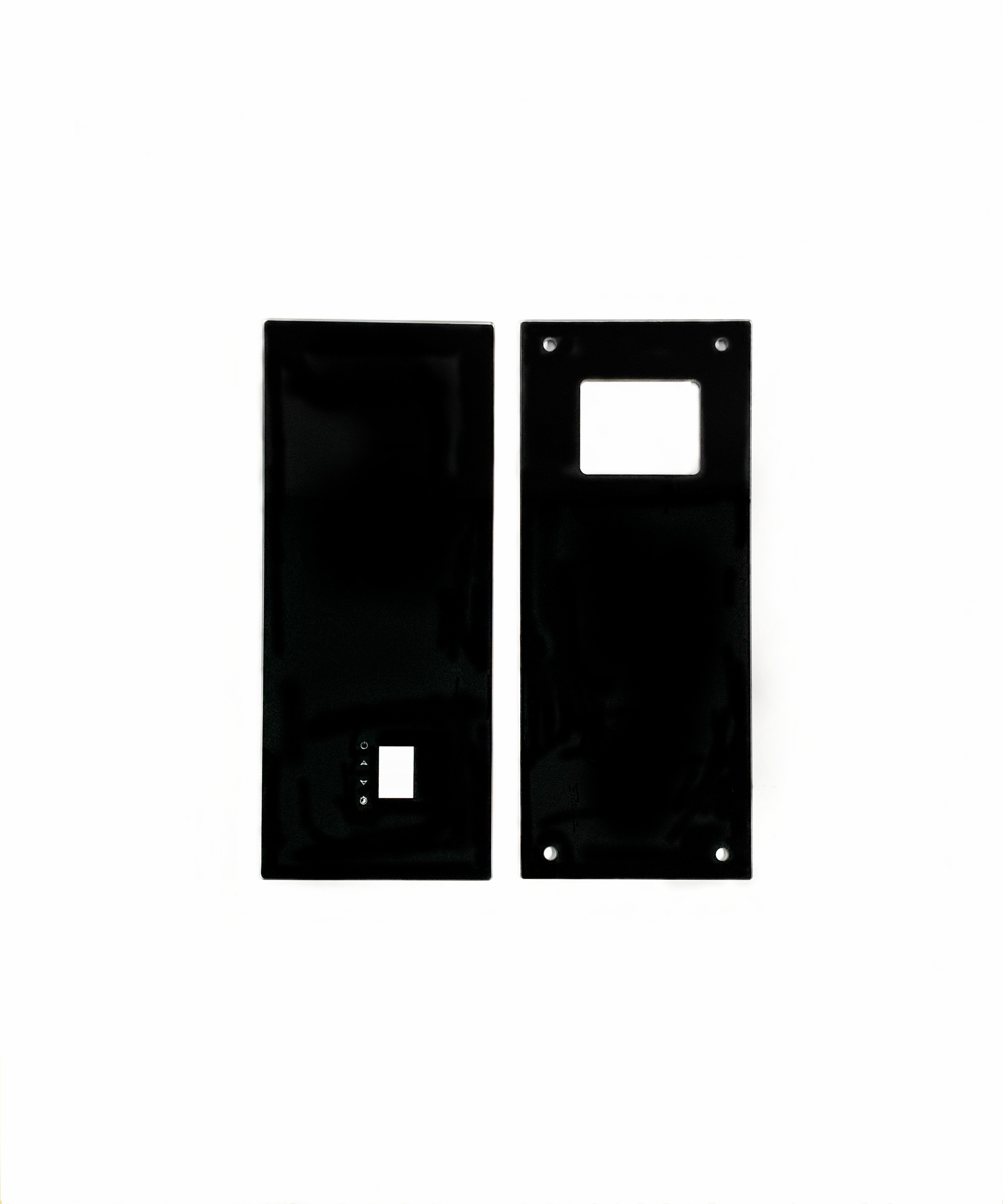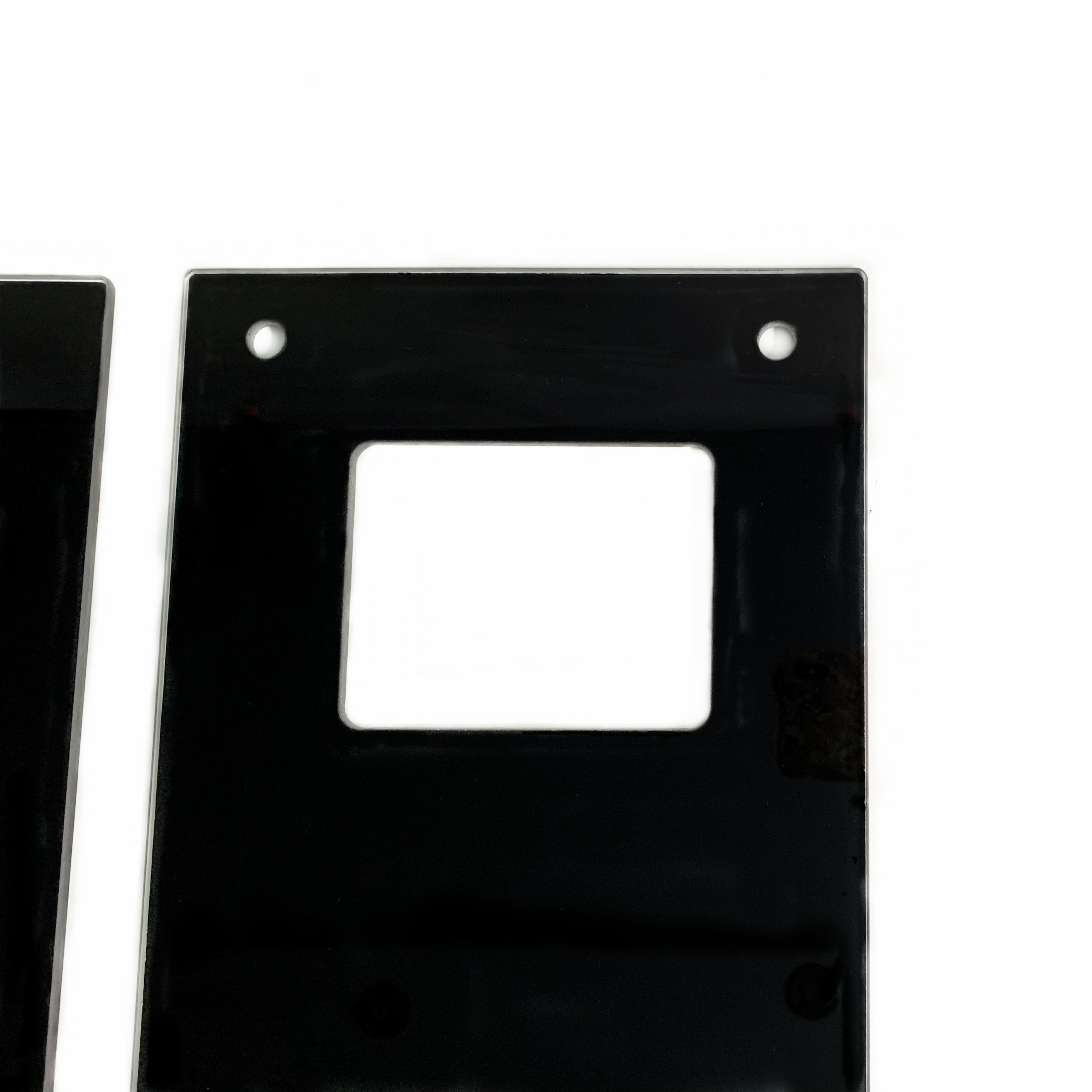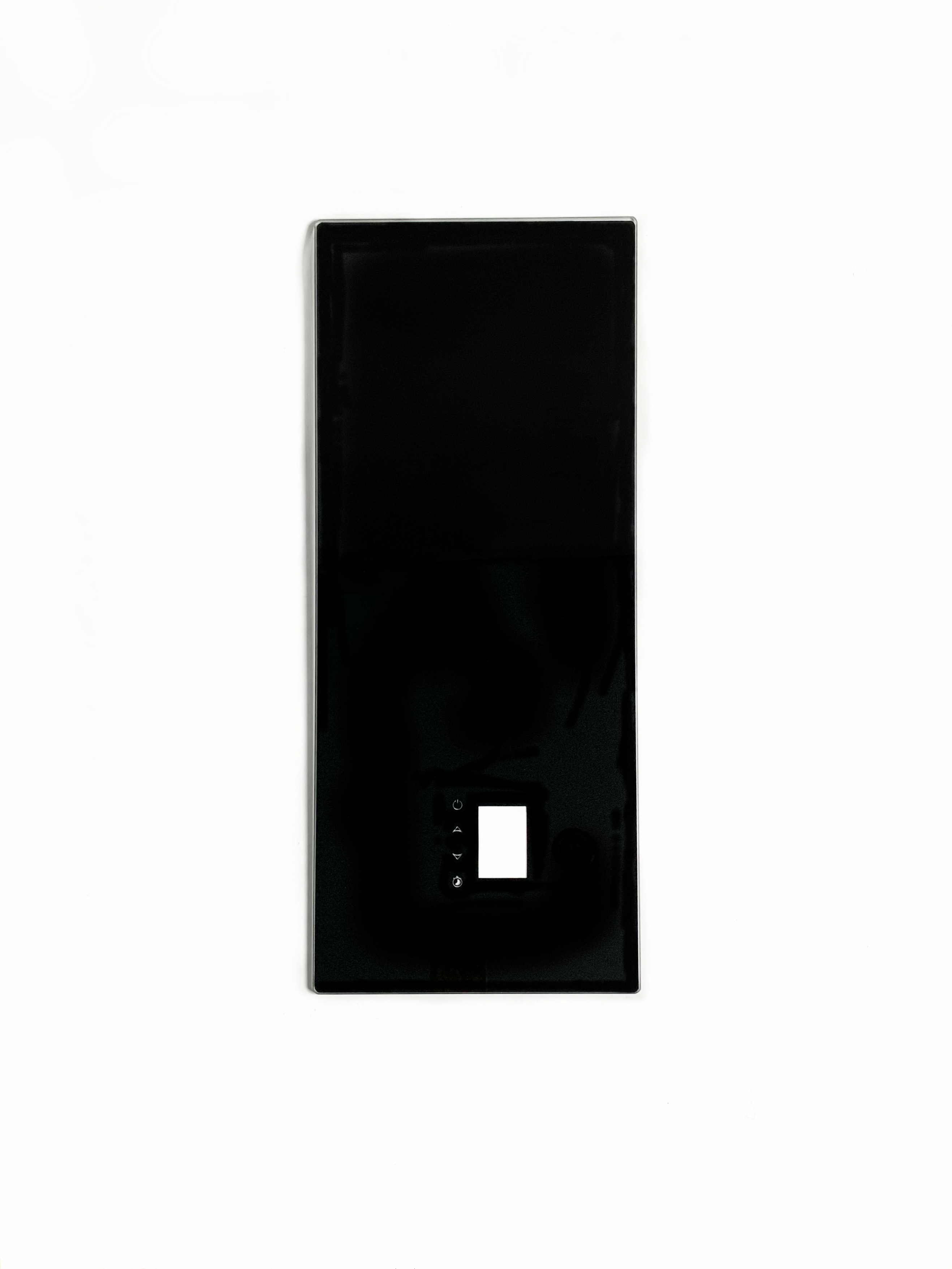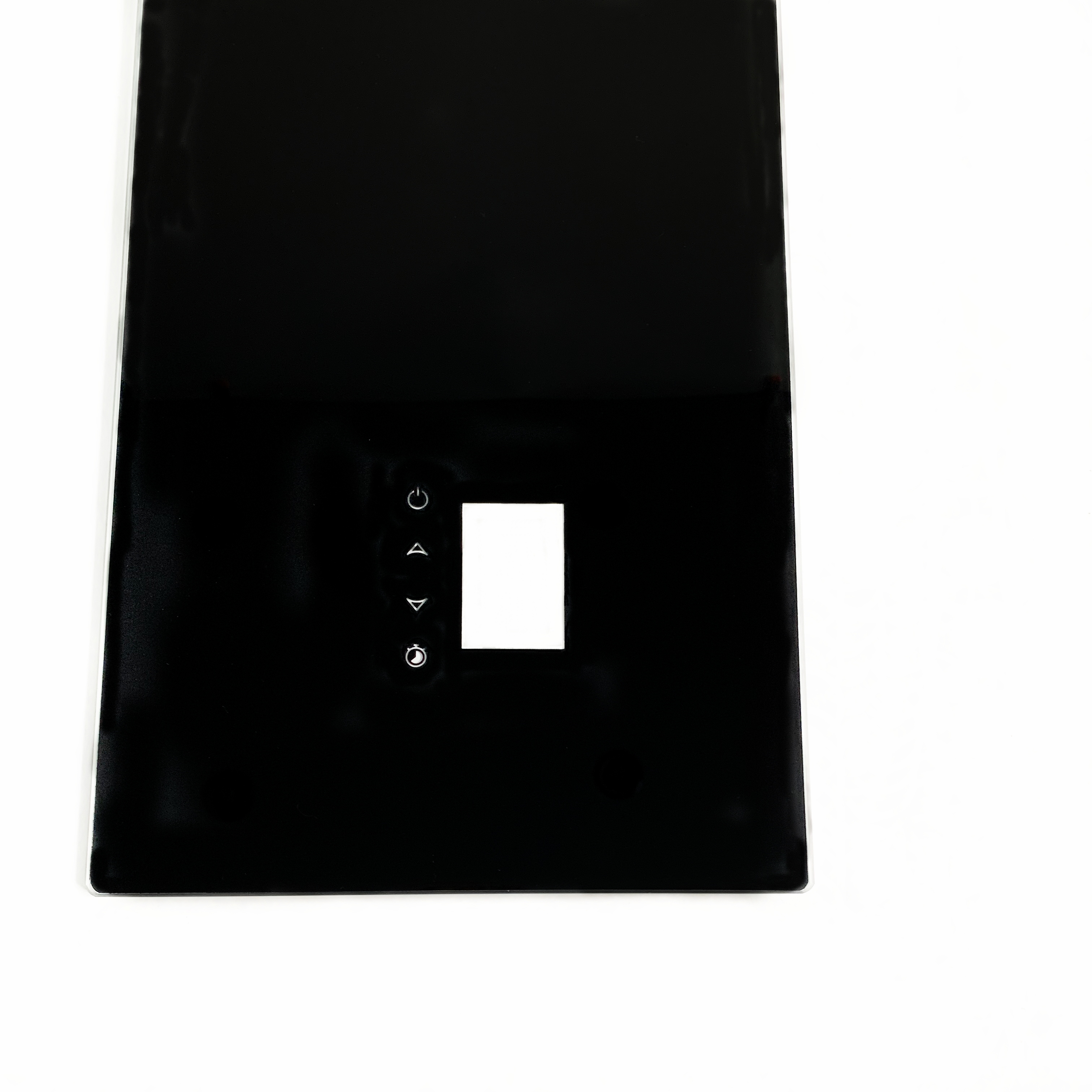 該款玻璃面板為智能電加熱器面板,黑色底色配白色字符印刷,高端大氣,是公司生產(chǎn)的新款智能電器玻璃產(chǎn)品。